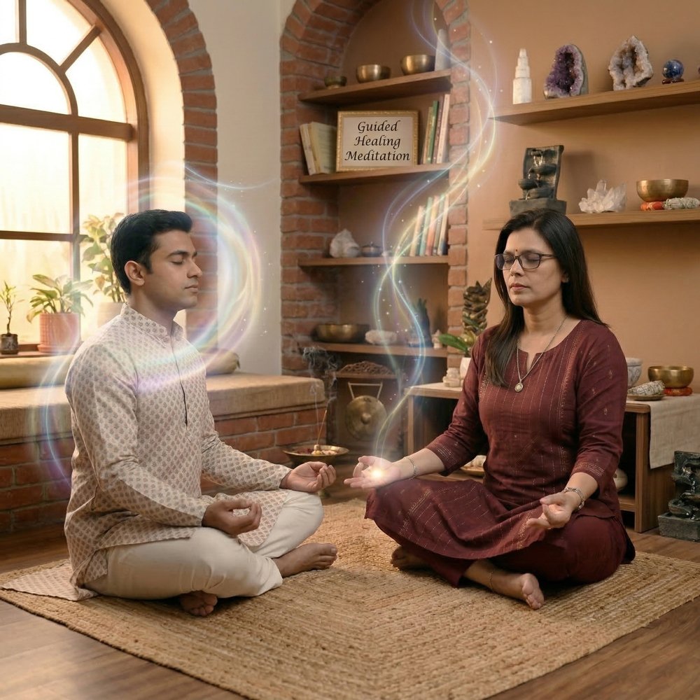 Guided healing meditation combines relaxation techniques with focused awareness to calm the mind and reduce emotional stress. This practice supports deeper self-awareness, inner peace and a more balanced mental and emotional state.